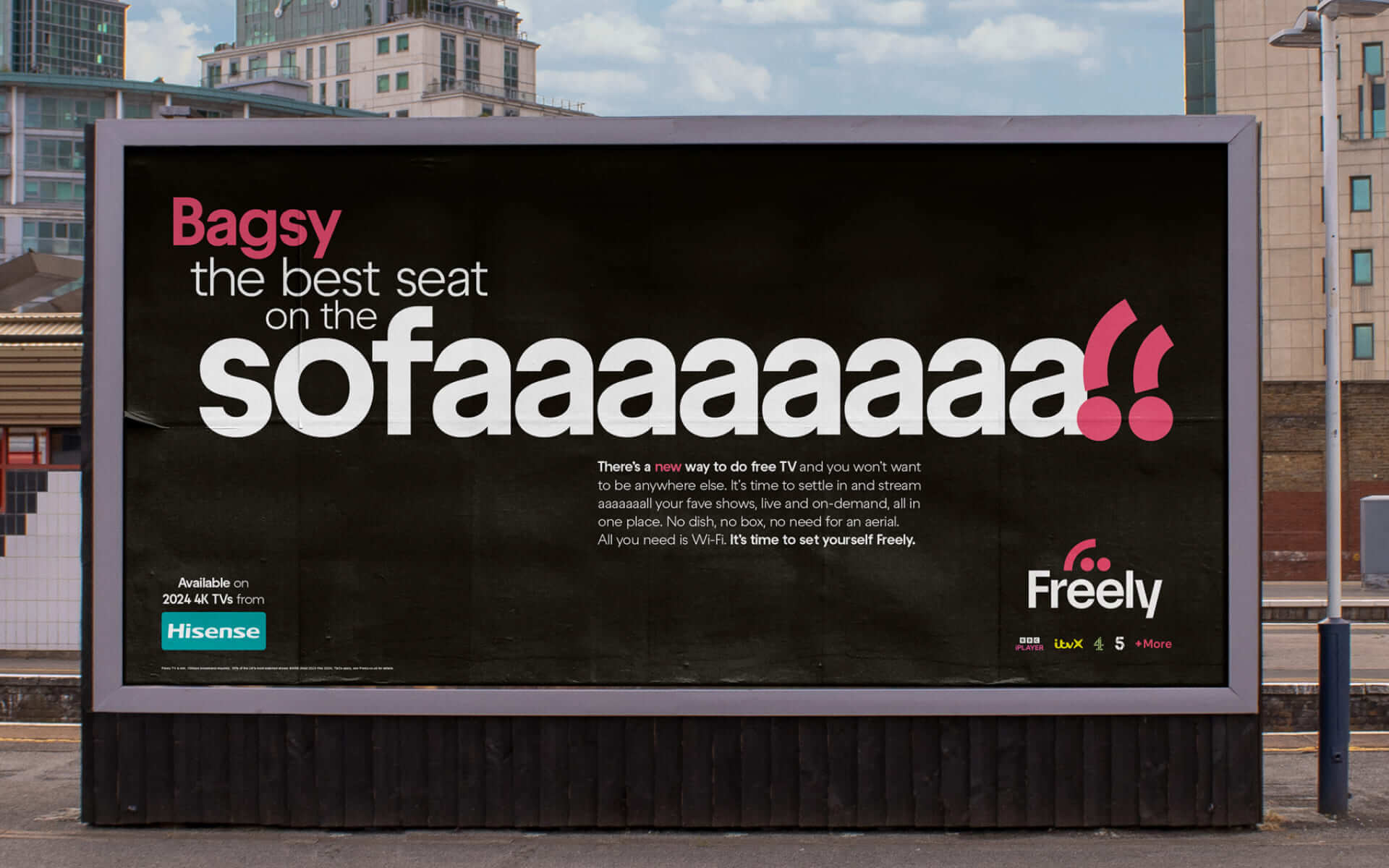 Across social, outdoor and mobile media we led with tightly focused messaging that played with headlines such as ‘Bagsy the best seat on the sofaaaaaaaa!’, with everything geared to positioning Freely as a simpler and way more relaxing way to enjoy a night in.